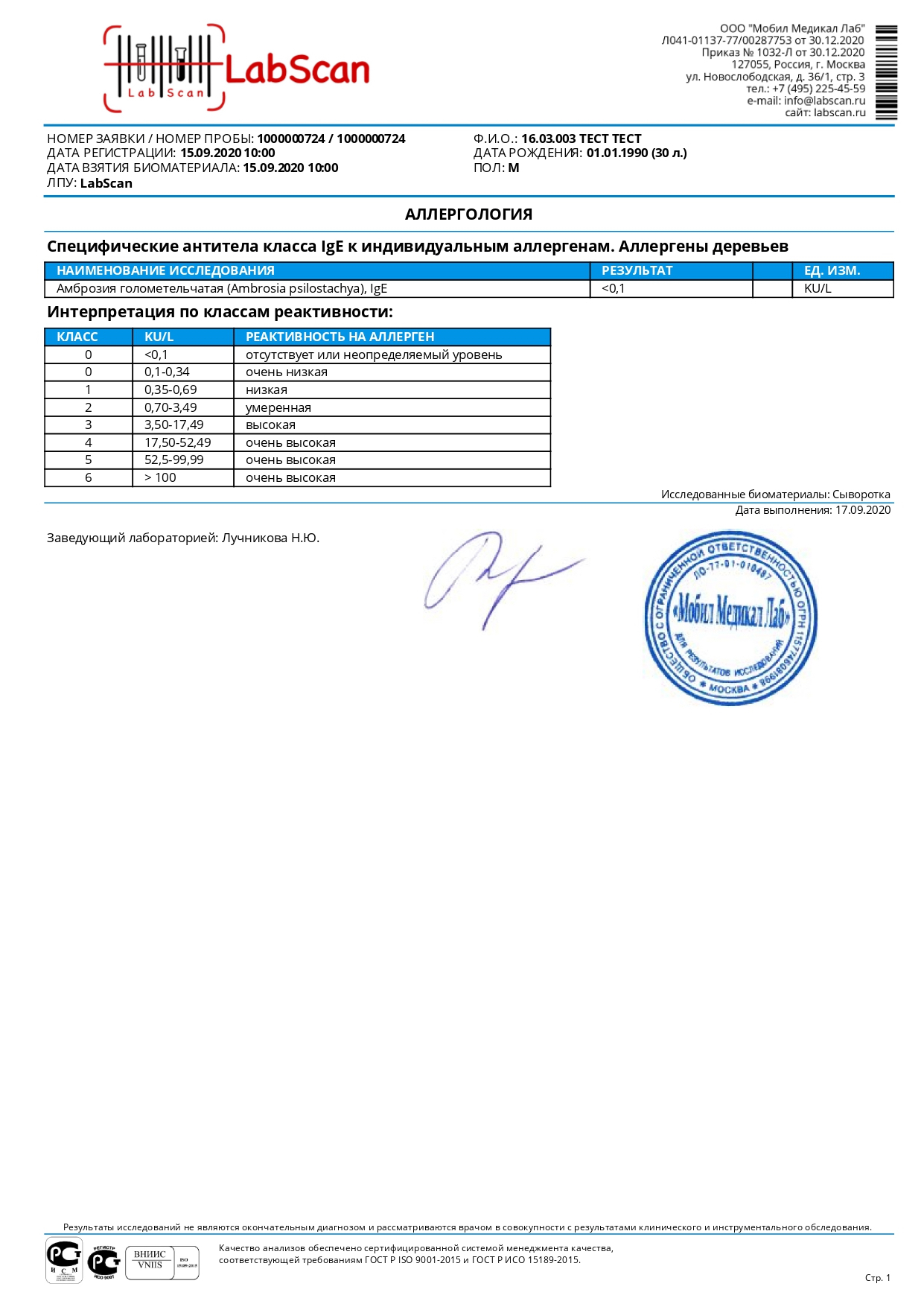 Амброзия голометельчатая (Ambrosia psilostachya), IgE
