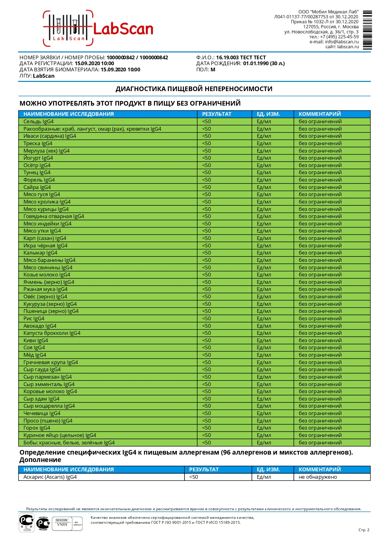 Пищевая непереносимость, определение 96 специфических IgG4 пищевых аллергенов и микстов аллергенов