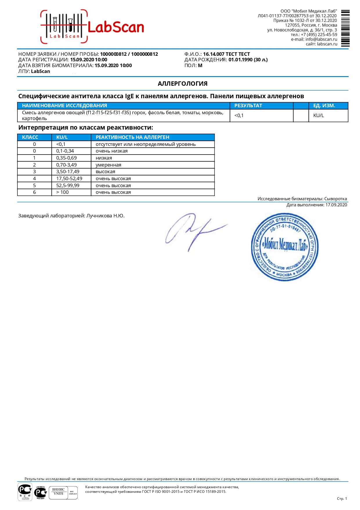 Смесь аллергенов овощей (f12-f15-f25-f31-f35) горох, фасоль белая, томаты, морковь, картофель