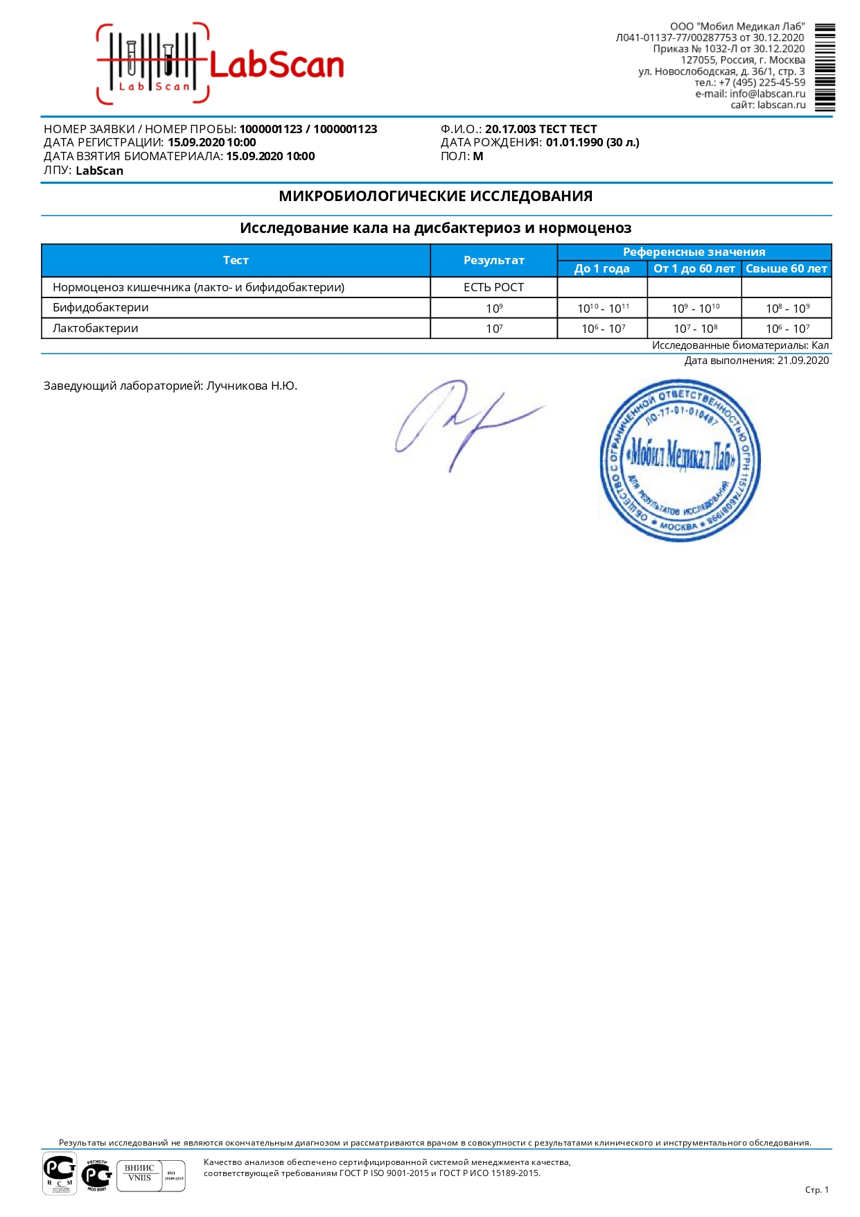 Нормоценоз кишечника (лакто- и бифидобактерии)