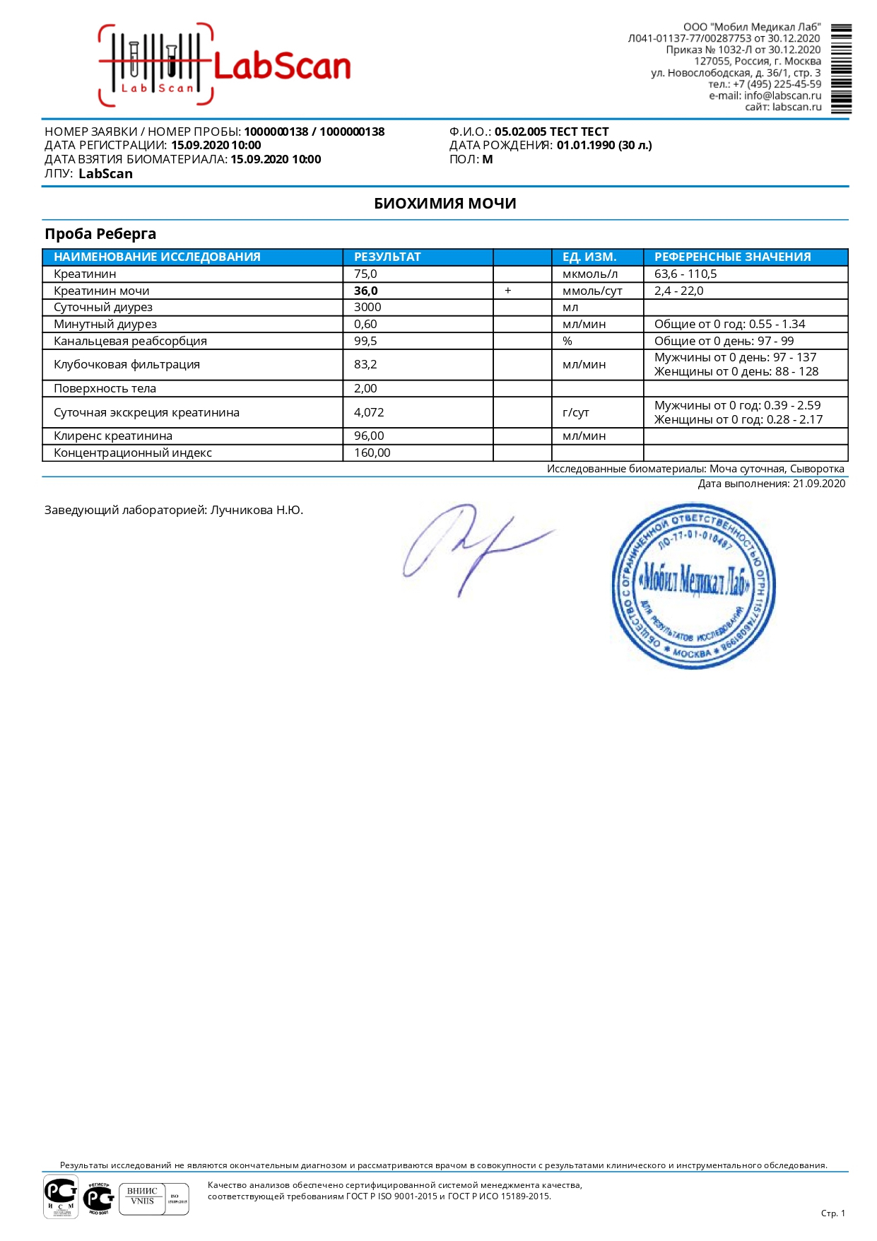 Выполняется из образца суточной мочи и образца венозной крови. Кровь для исследования берется утром натощак после 8–12 часов голодания или в течение дня после 2–4 часового голодания. Можно пить воду без газа. Суточная моча собирается в течение предыдущих суток, ее сбор заканчивается в день сдачи крови. При оформлении направительного бланка указать рост (см), вес (кг) и суточный диурез (мл) пациента.