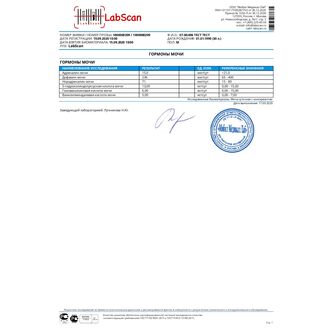 Биогенные амины в моче (адреналин, норадреналин, дофамин, метанефрин общий, норметанефрин общий) и их метаболиты (ванилилминдальная кислота, гомованилиновая кислота, 5-гидроксииндолуксусная кислота)