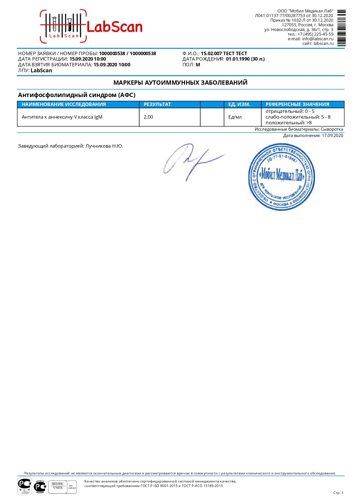 Антитела к аннексину V класса IgM