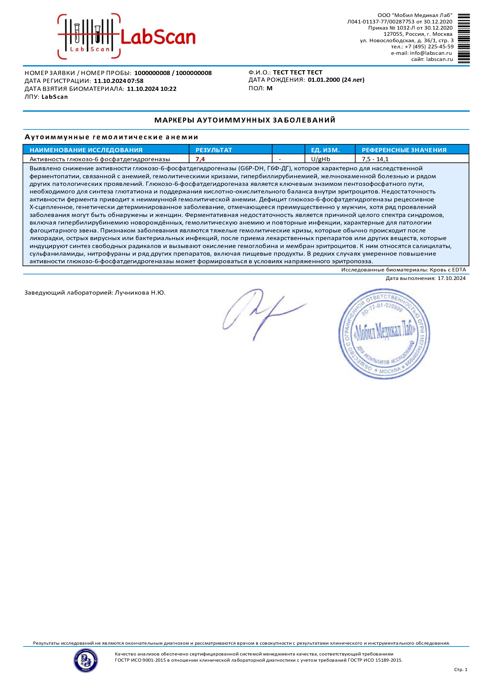 Активность глюкозо-6 фосфатдегидрогеназы
