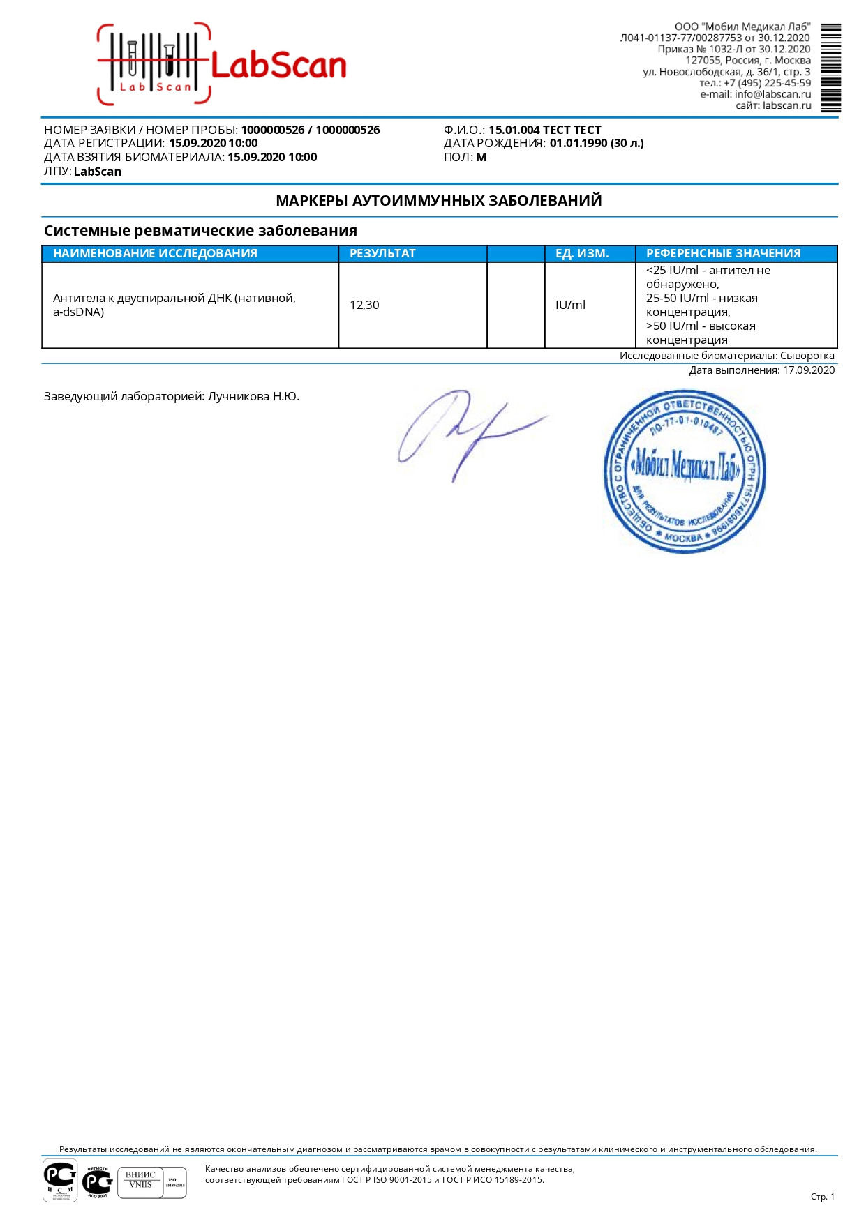 Антитела к двуспиральной ДНК (нативной, a-dsDNA)