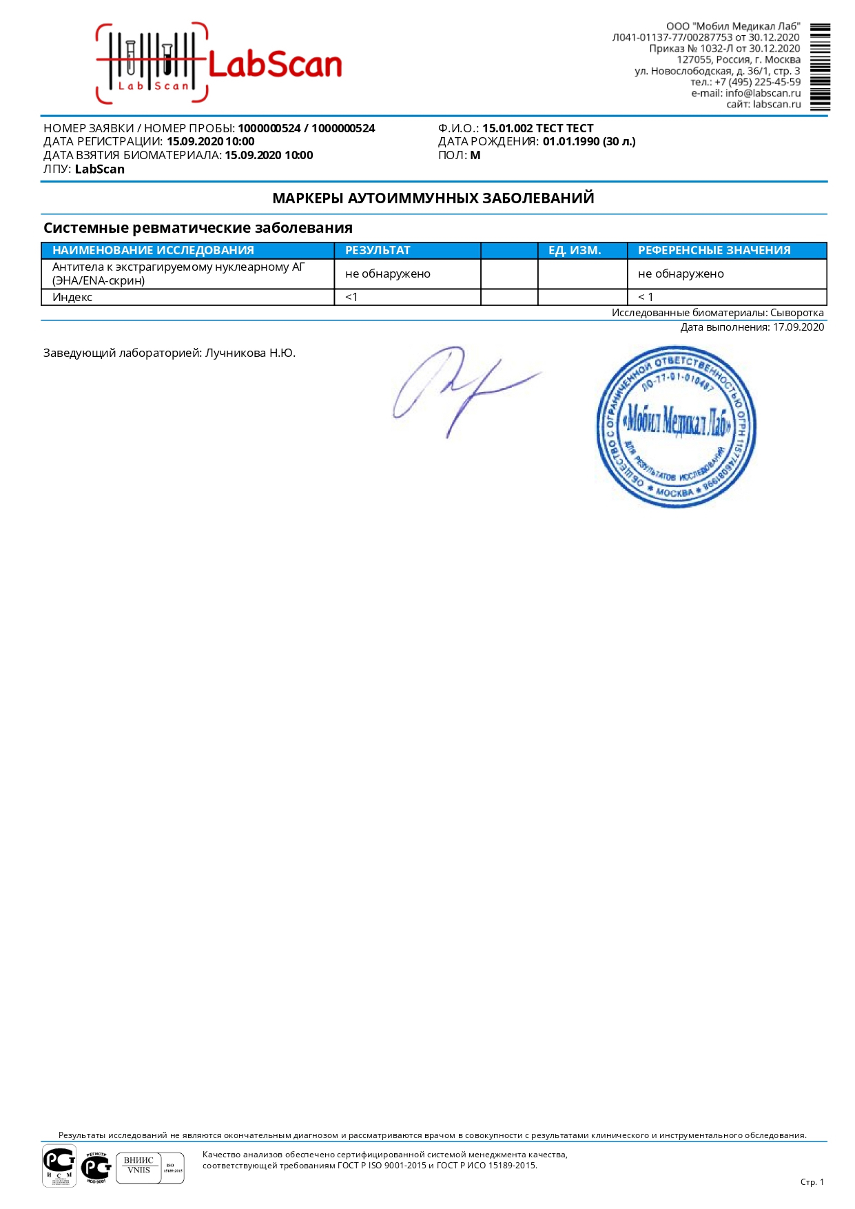 Антитела к экстрагируемому нуклеарному АГ (ЭНА/ENA-скрин)