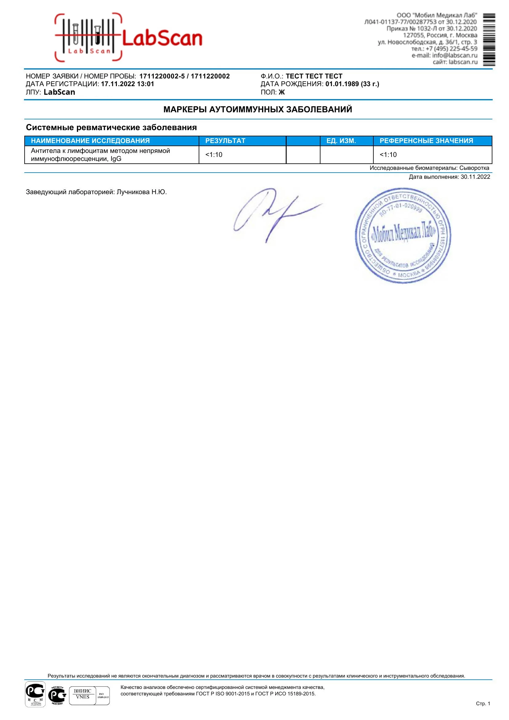 Антитела к лимфоцитам класса IgG