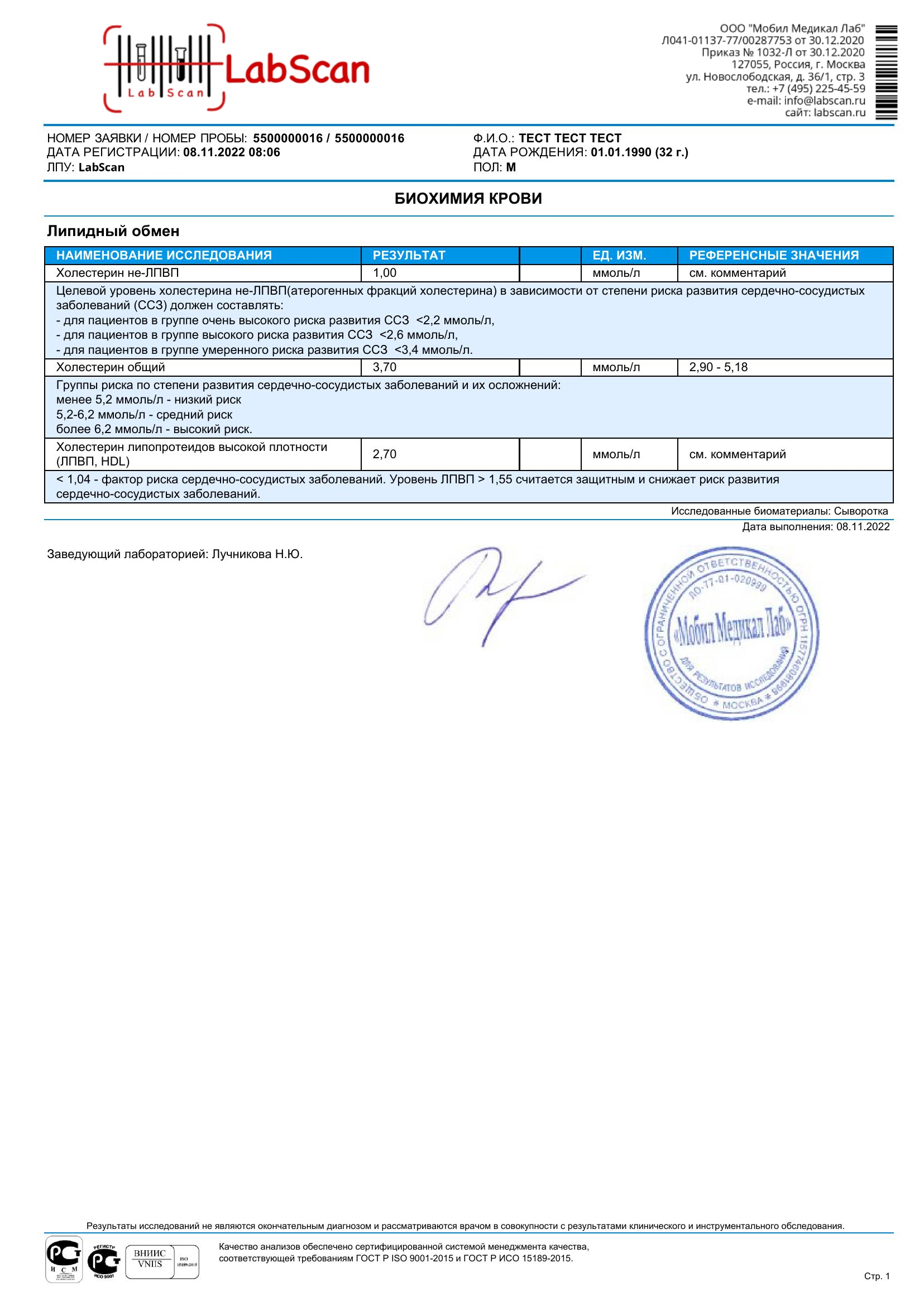 Холестерин не-ЛПВП (включает определение общего холестерина и холестерина липопротеидов высокой плотности (ЛПВП, HDL))