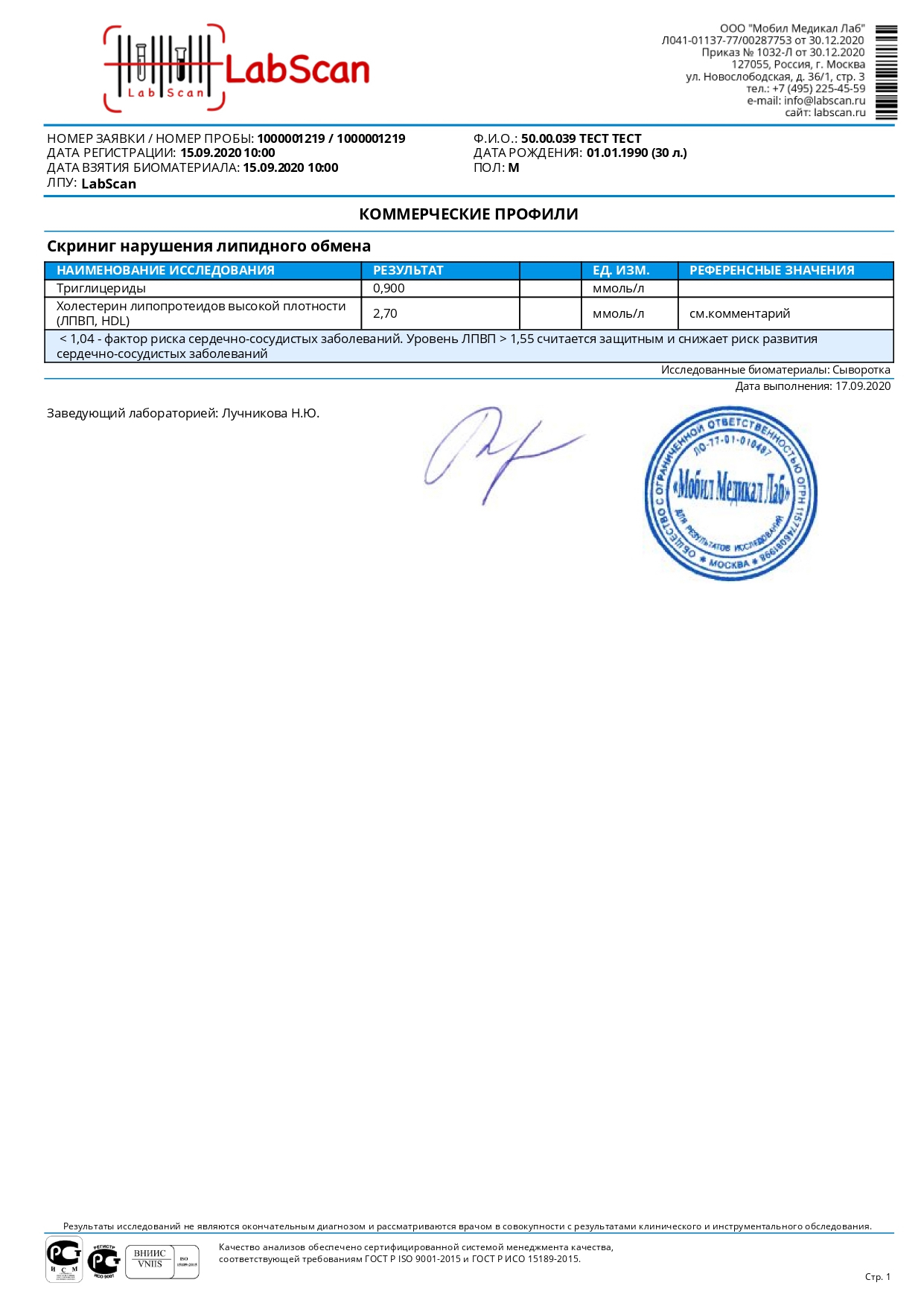 Скрининг нарушения липидного обмена