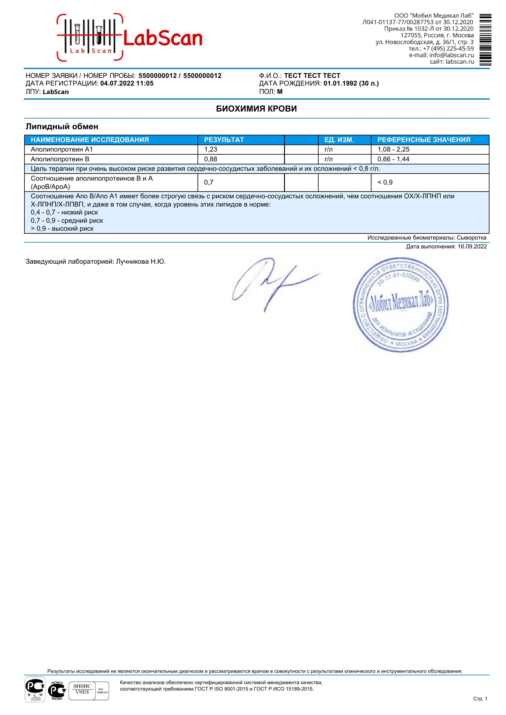 Соотношение аполипопротеинов В и А (АроВ/АроА1)