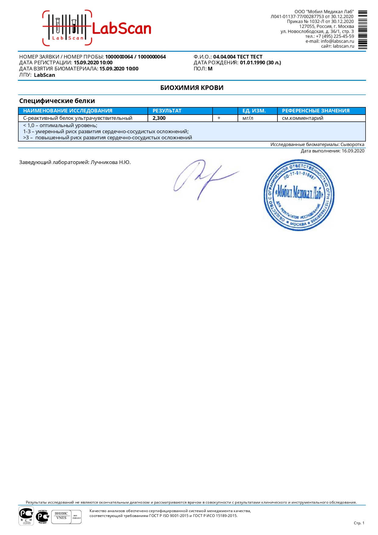 С-реактивный белок ультрачувствительный