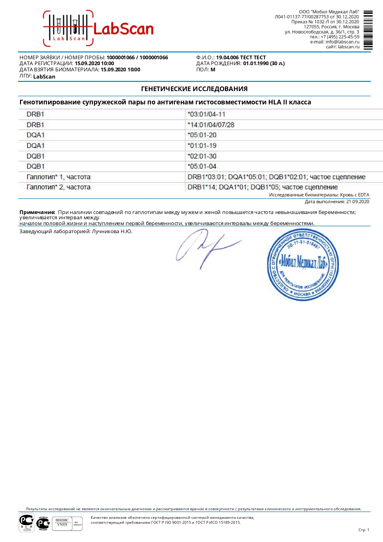 Комплекс «Генотипирование супружеской пары по антигенам гистосовместимости HLA II класса»