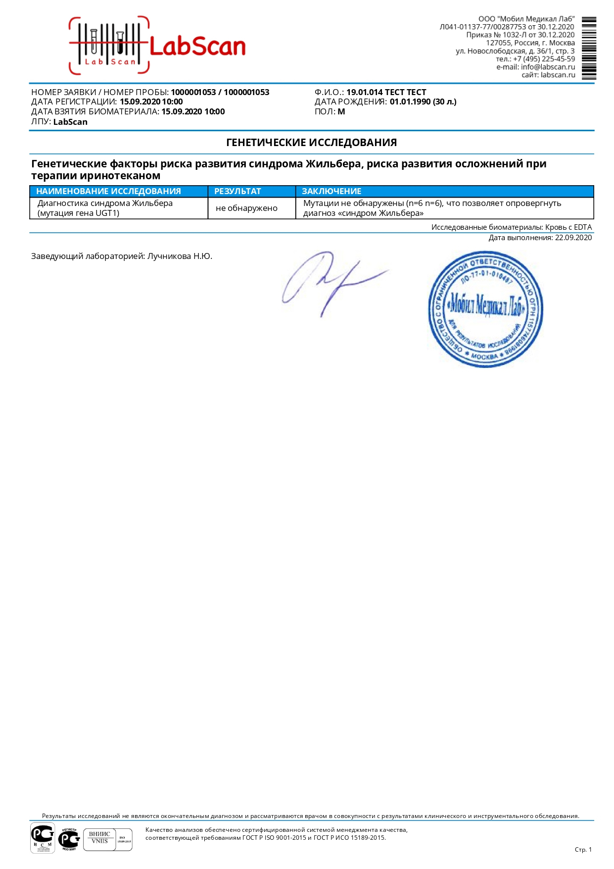Генетические факторы риска развития синдрома Жильбера, риска развития осложнений при терапии иринотеканом