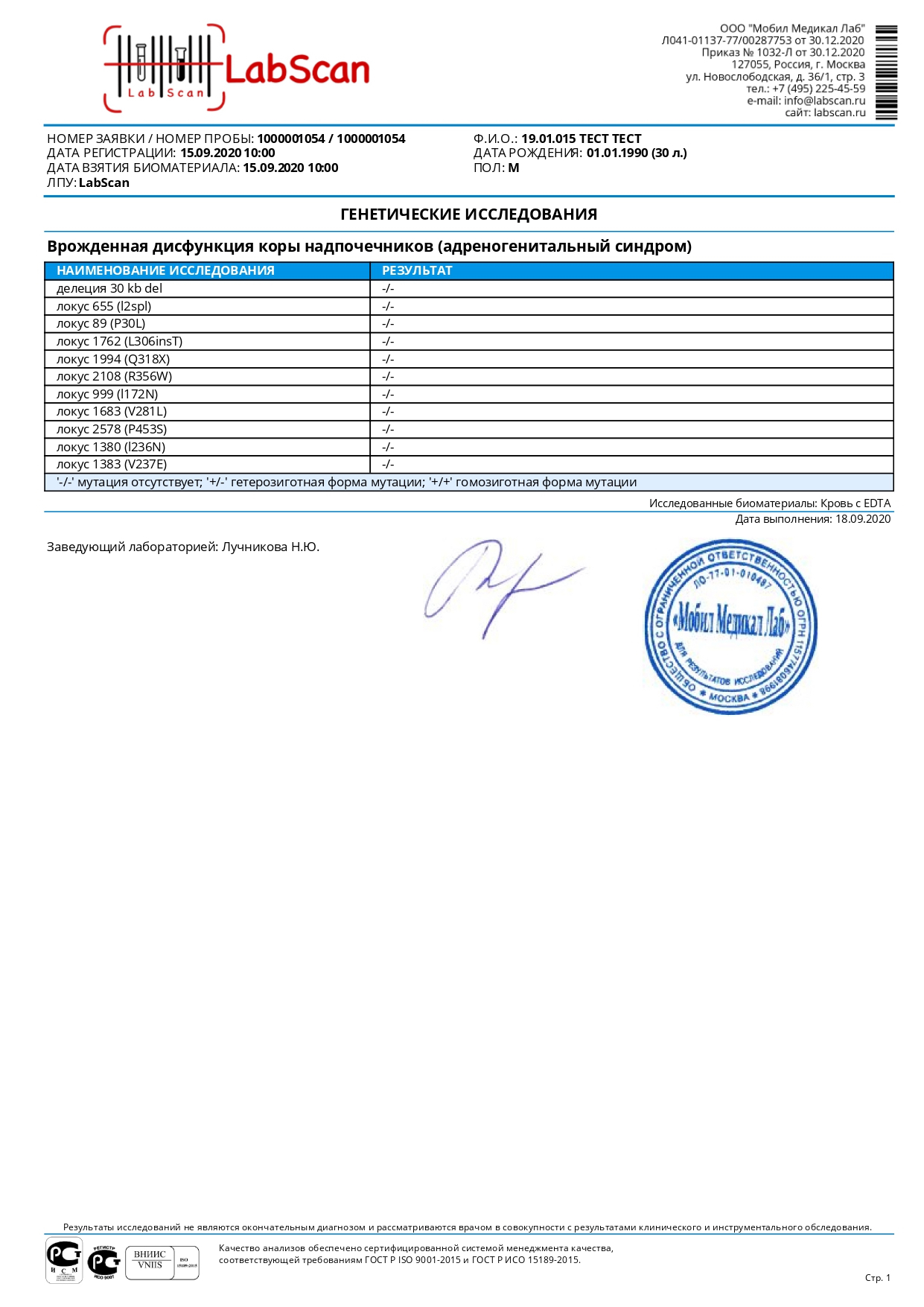 Комплексное генетическое обследование на врожденную гиперплазию надпочечников (15 мутаций)