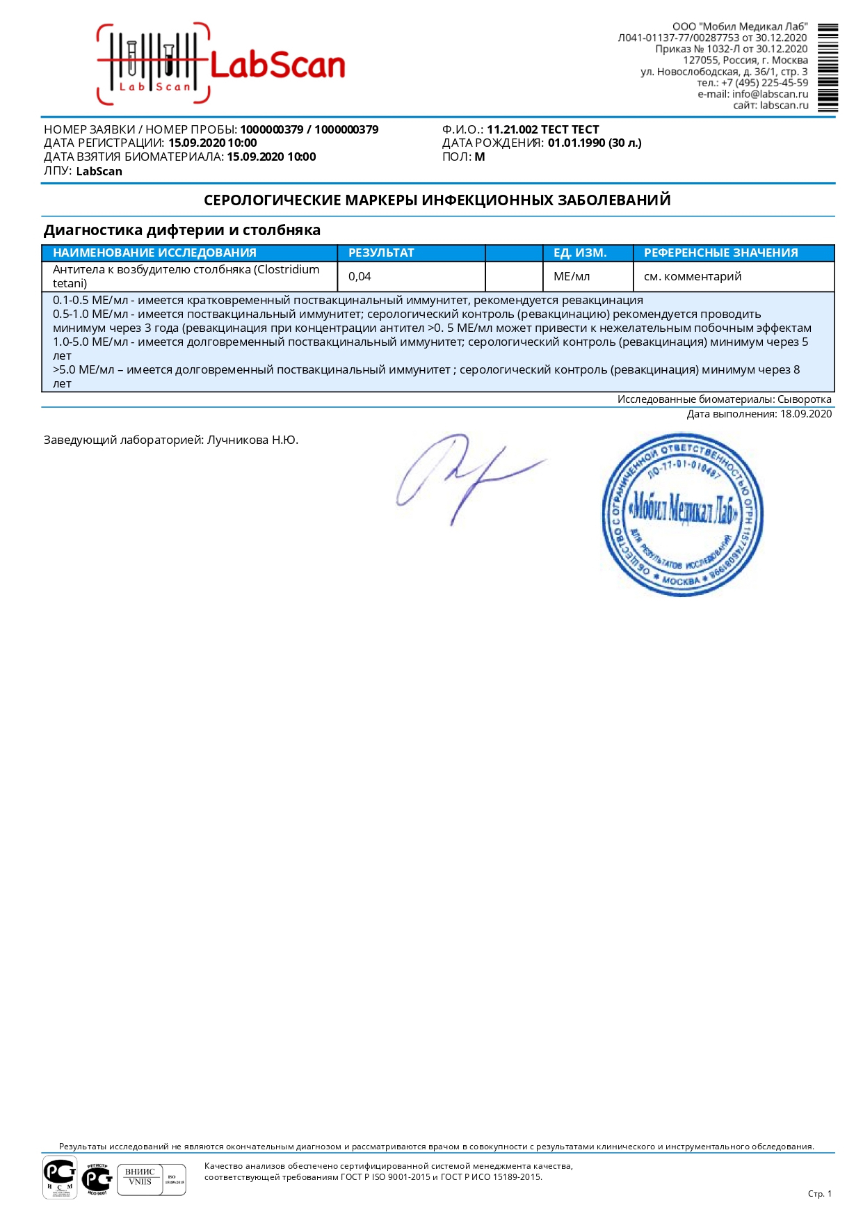 Антитела к возбудителю столбняка (Clostridium tetani)