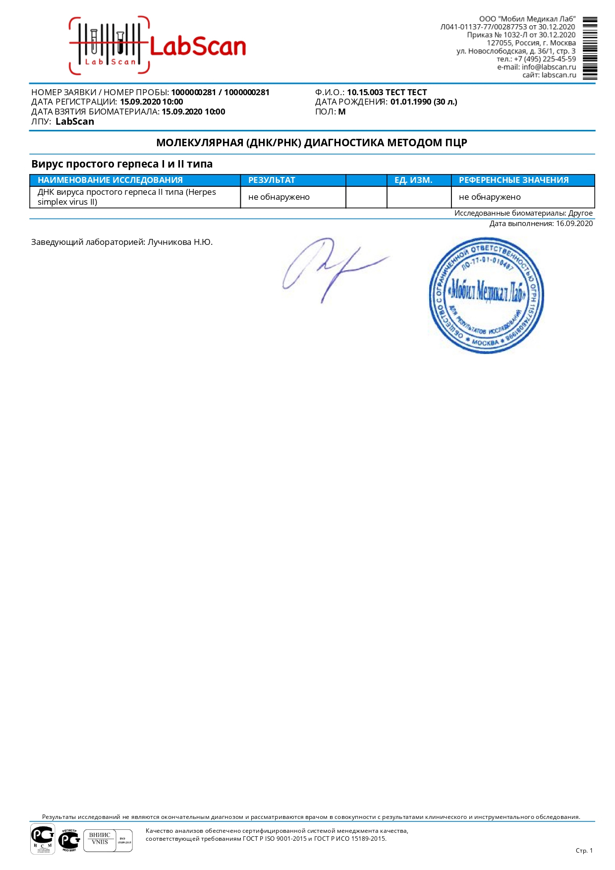 - Повторное исследование возможно не ранее чем через неделю
