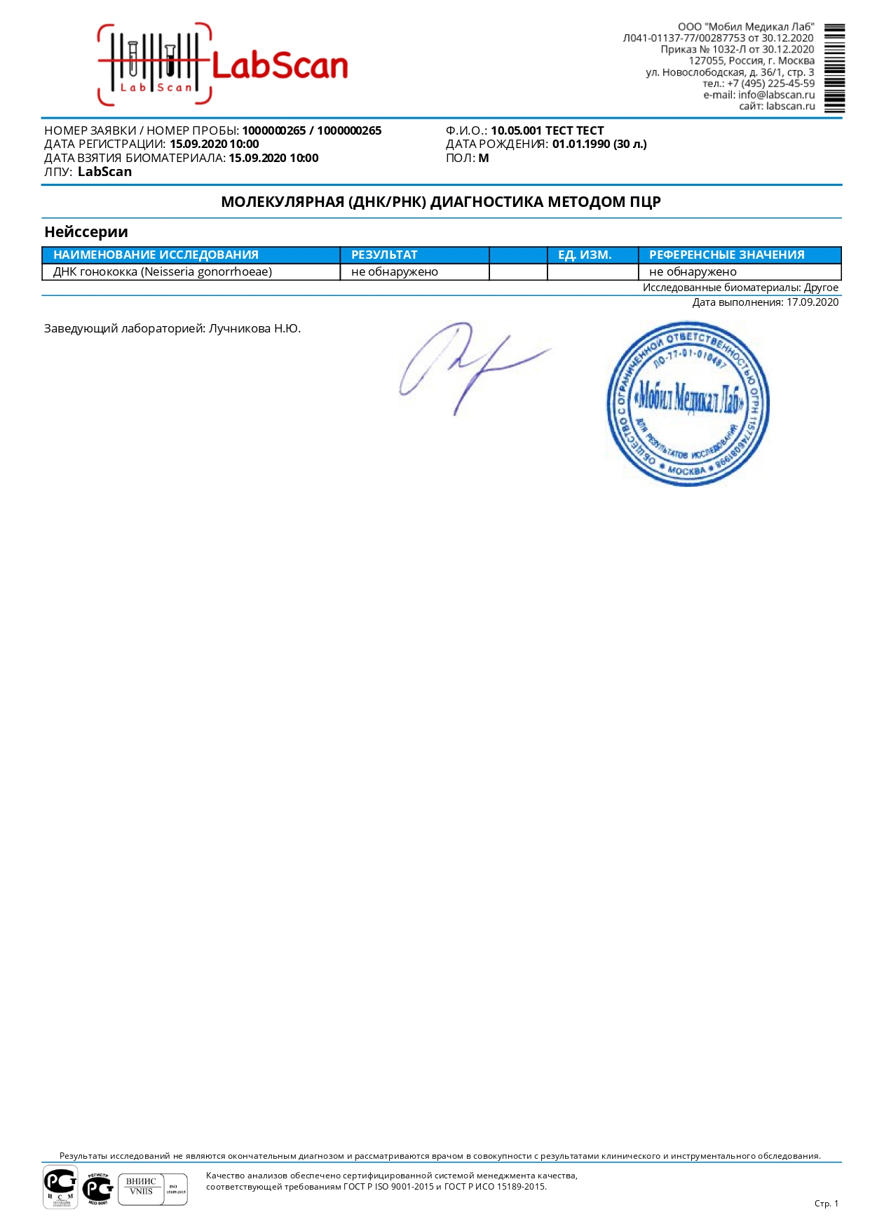 - Повторное исследование возможно не ранее чем через неделю