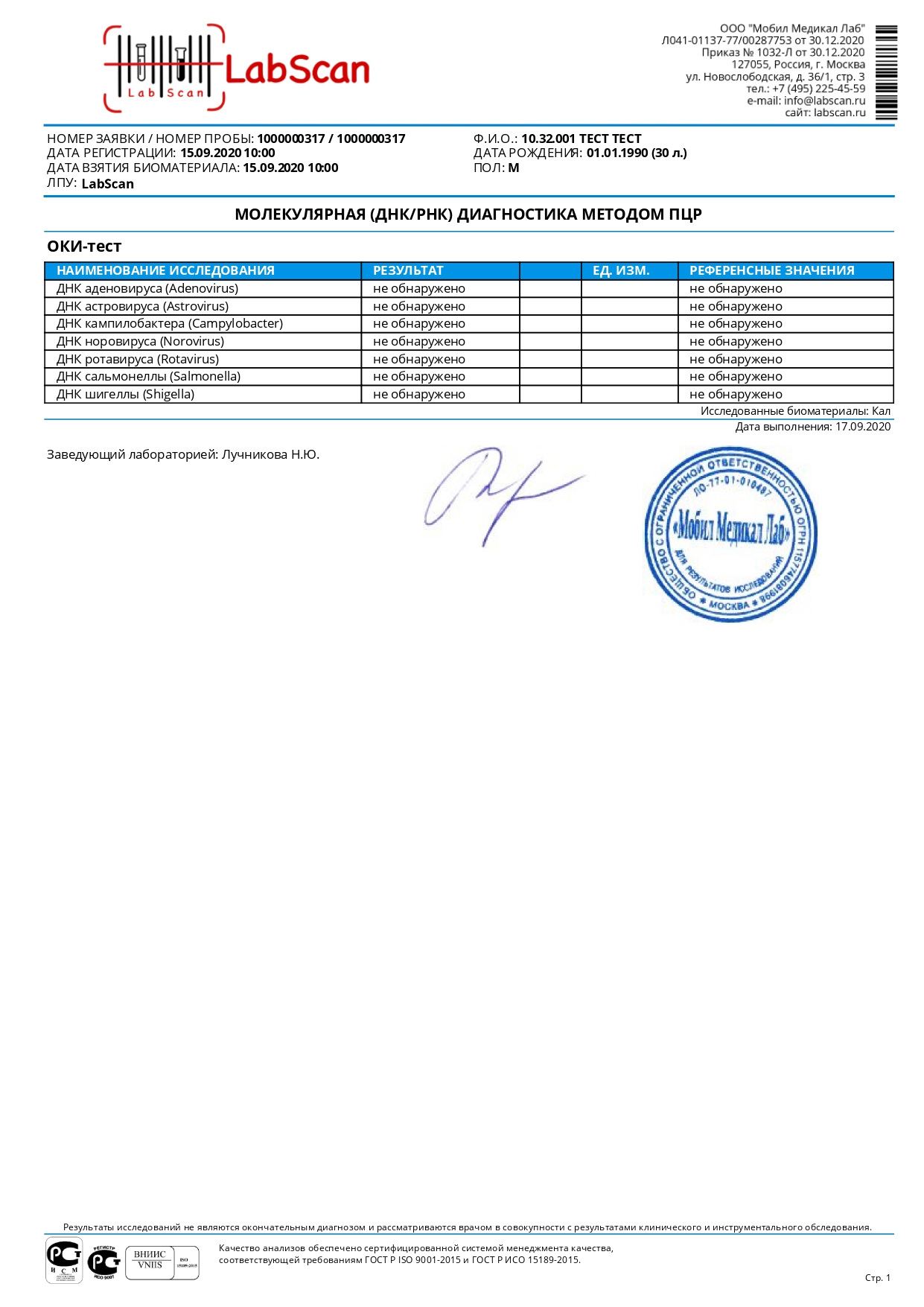 ОКИ-тест(Salmonella / Shigella / Campylobacter / Adenovirus / Rotavirus A, C / Norovirus 1, 2 / Astrovirus)