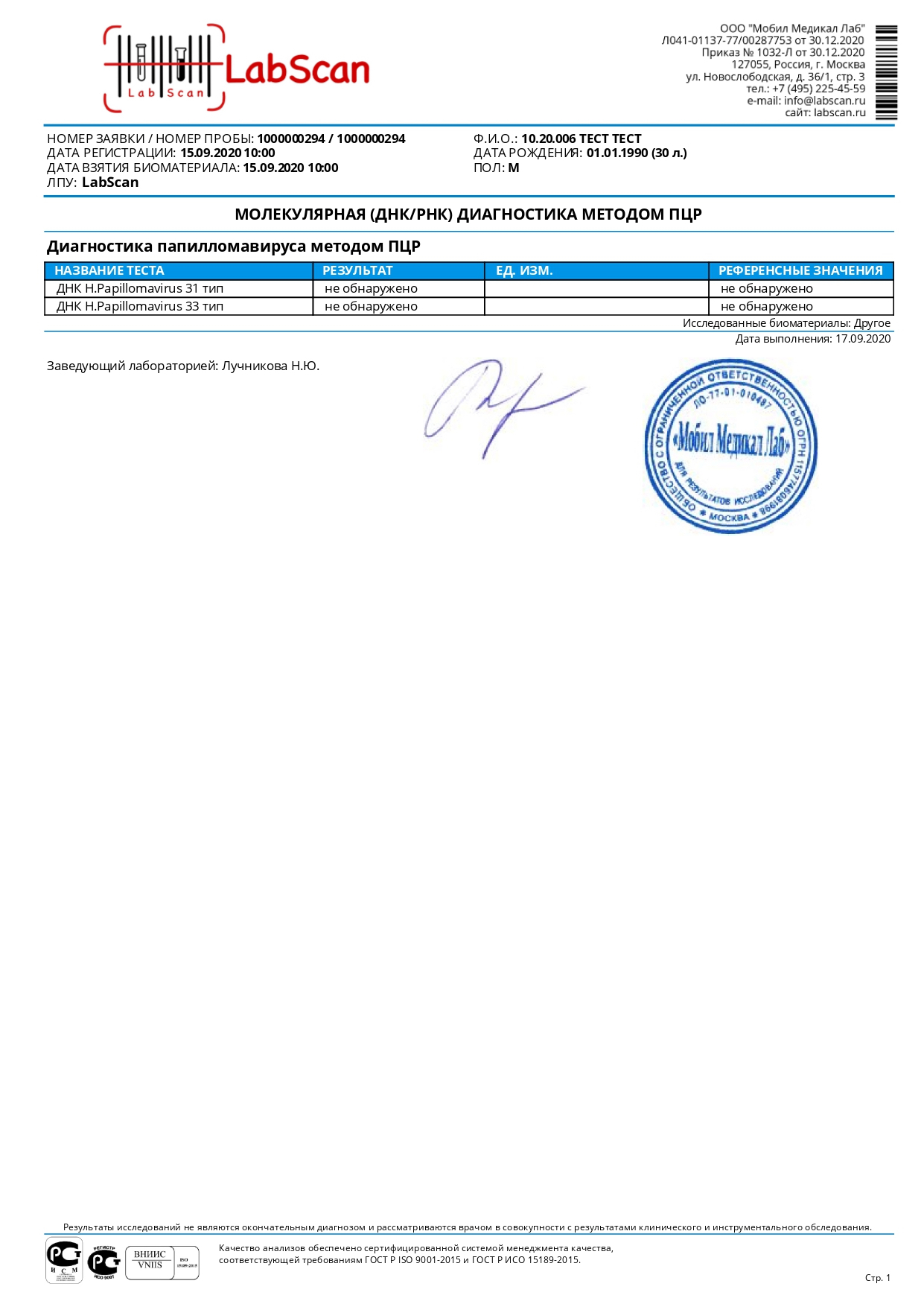 ДНК папилломавирусов (Human Papillomavirus, ВПЧ) 31/33 типов с определением типа