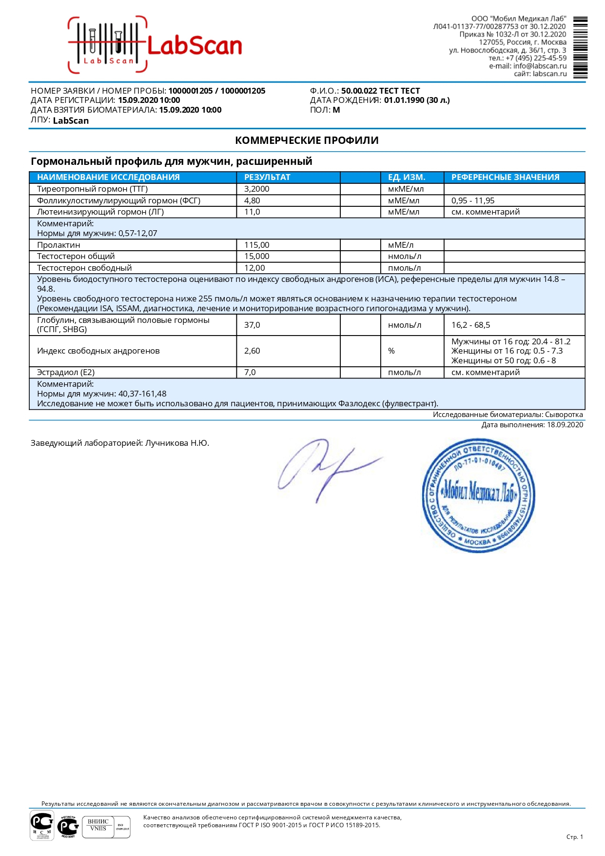 Гормональный профиль для мужчин, расширенный