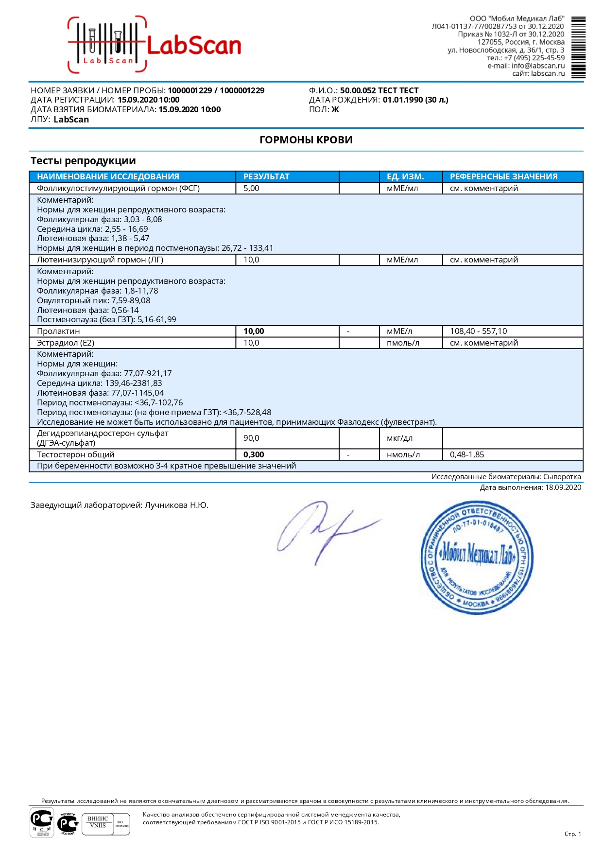 Гормональный профиль I фаза цикла