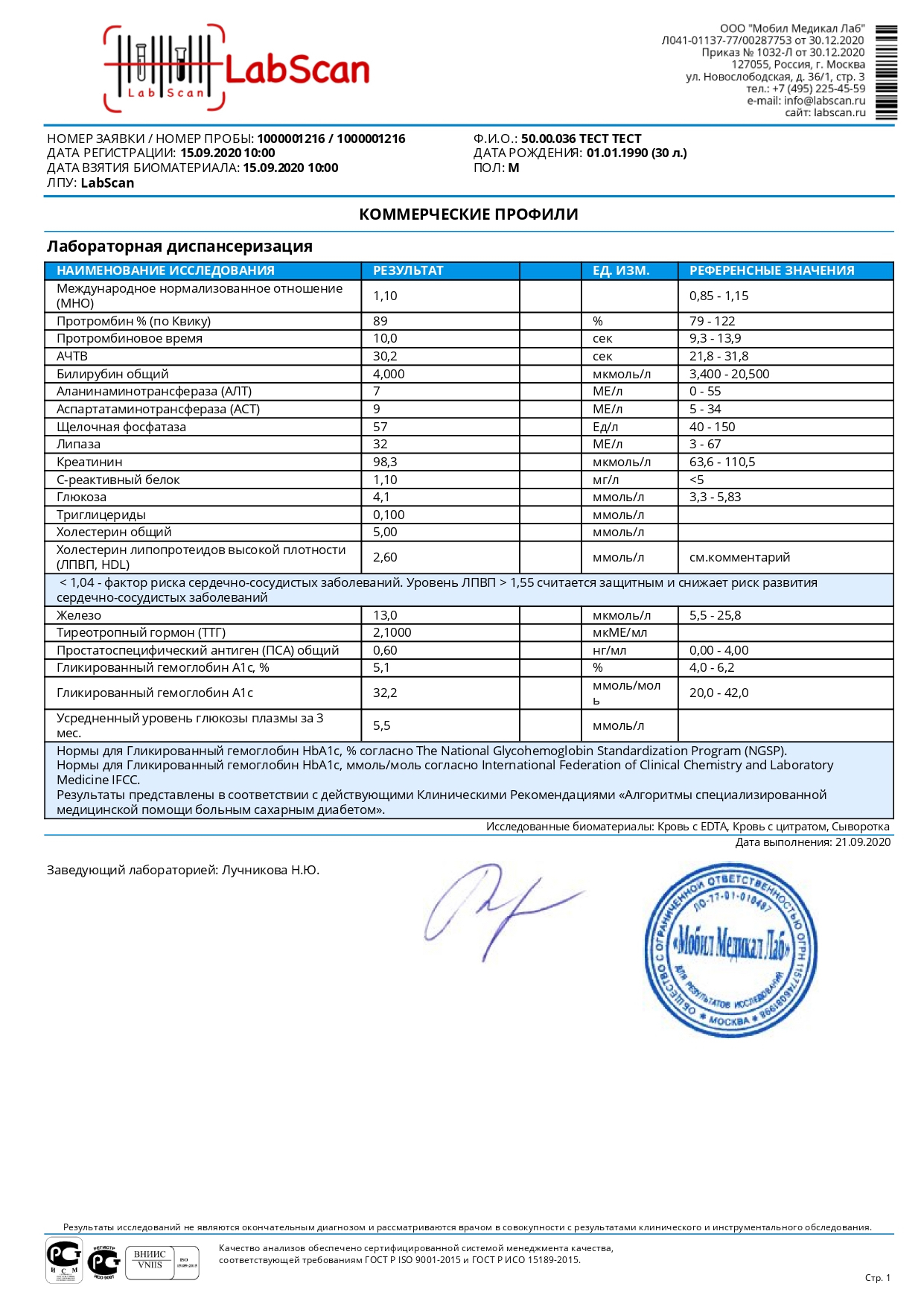 Лабораторная диспансеризация