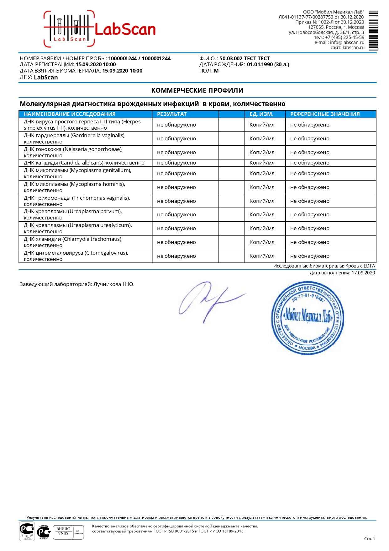 Молекулярная диагностика врожденных инфекций в крови, количественно