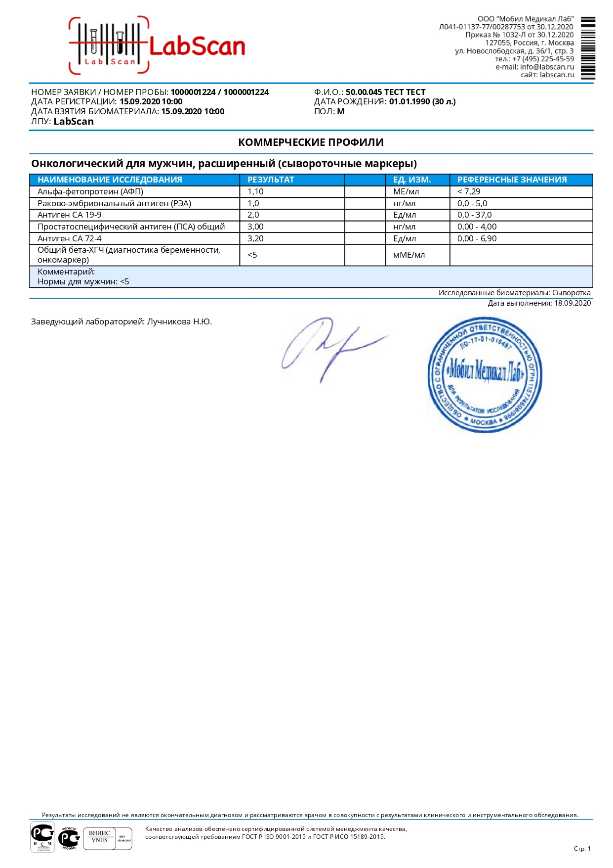 Онкологический для мужчин, расширенный (сывороточные маркеры)