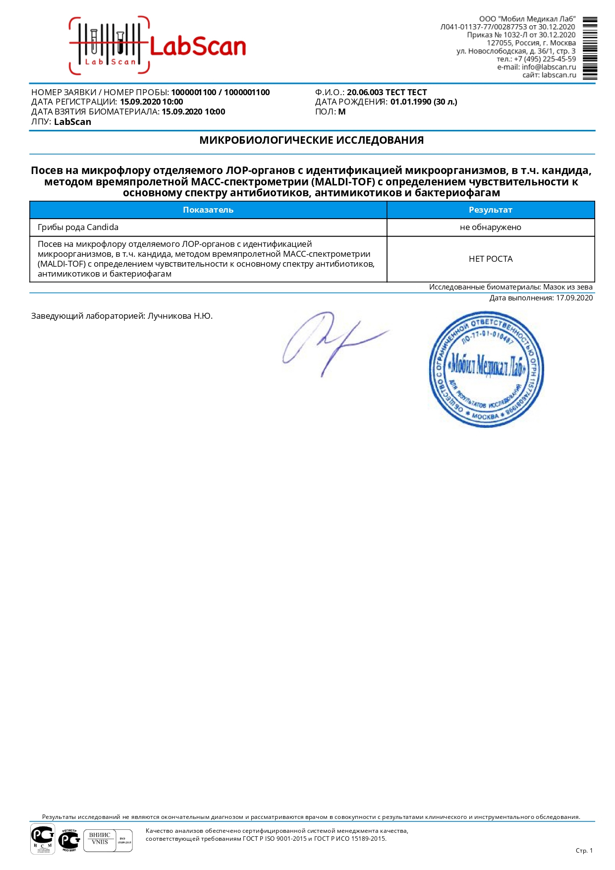 Посев на микрофлору отделяемого ЛОР-органов с идентификацией микроорганизмов методом времяпролетной МАСС-спектрометрии (MALDI-TOF) с определением чувствительности к основному спектру антибиотиков и бактериофагам