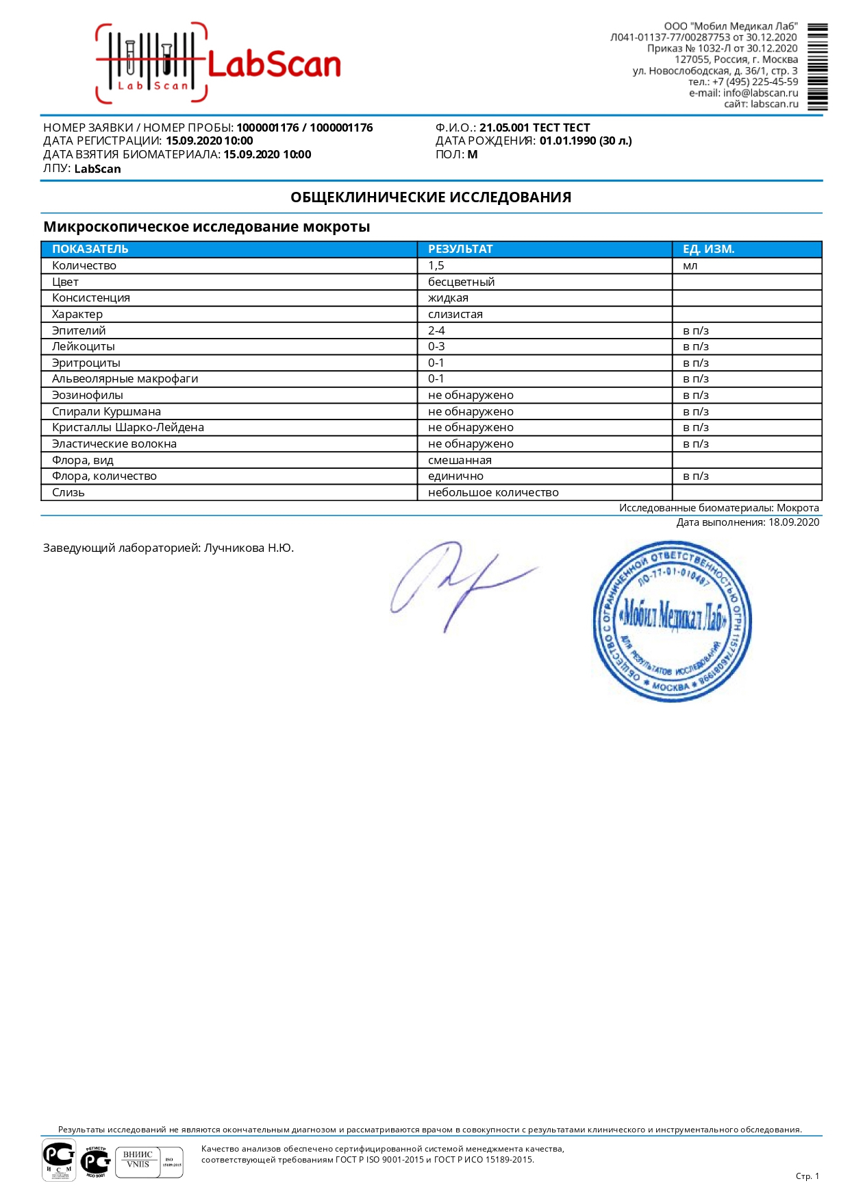 Общий анализ мокроты