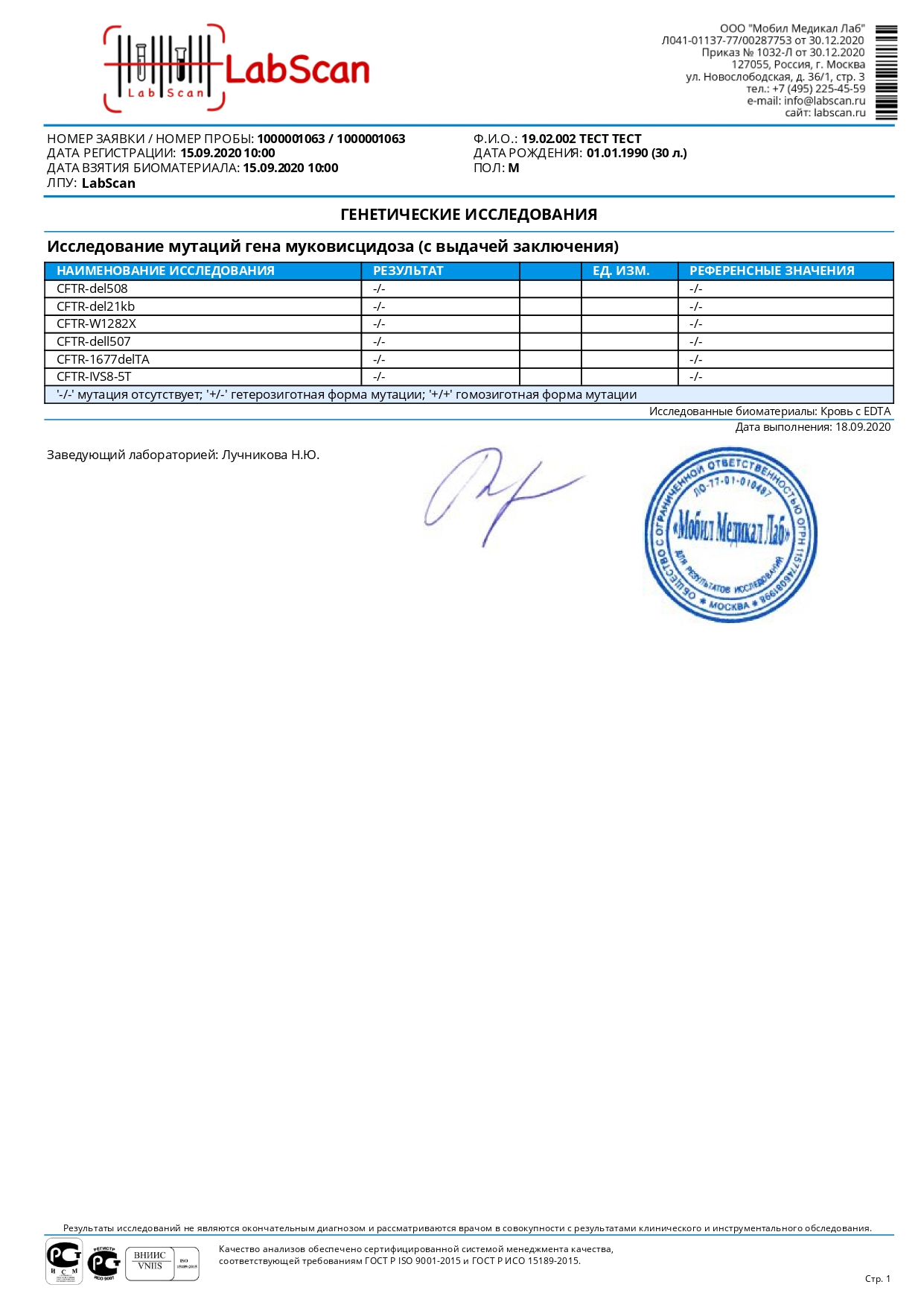 Исследование мутаций гена муковисцидоза (CFTR)