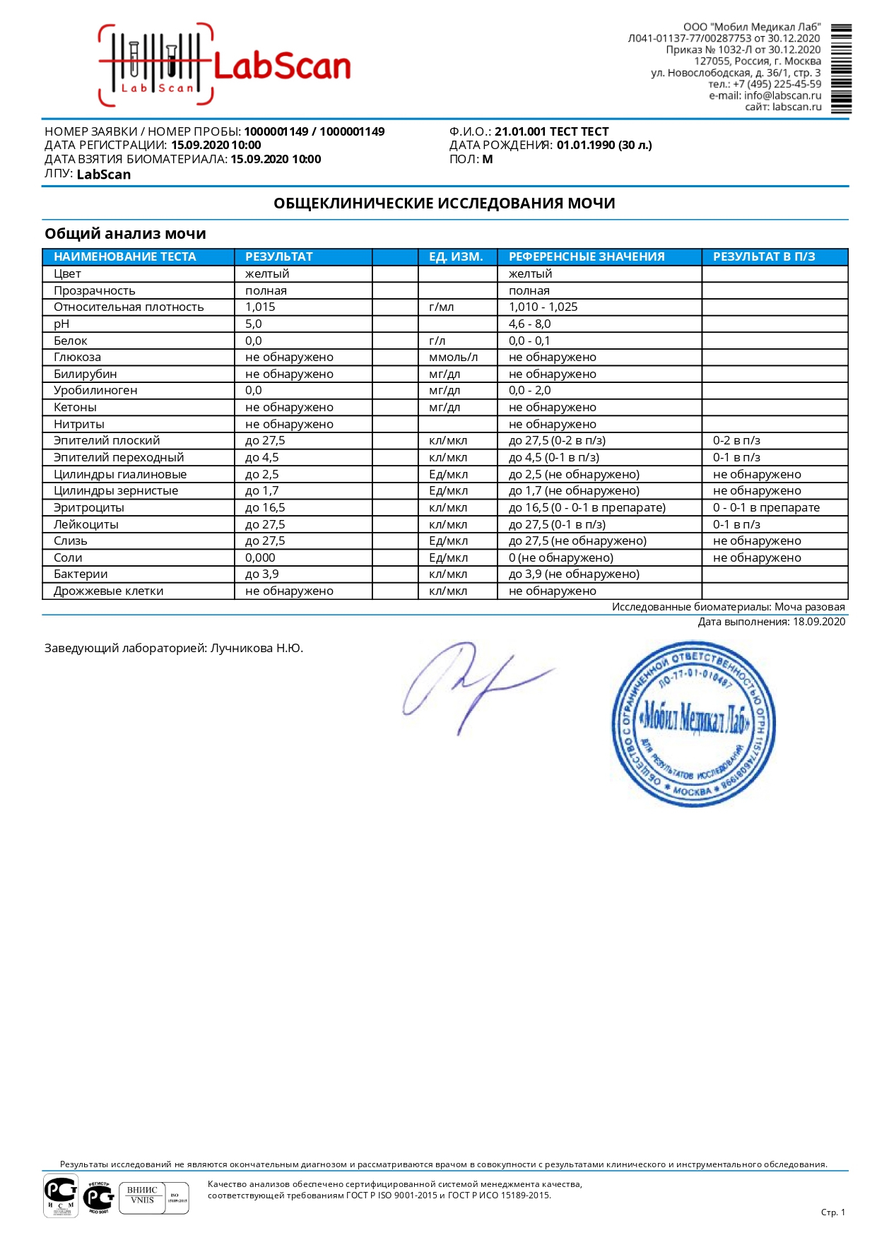 Результаты общего анализа мочи могут варьироваться в зависимости от различных факторов, включая возраст, пол и состояние здоровья пациента. Основные параметры и их референсные значения включают:
