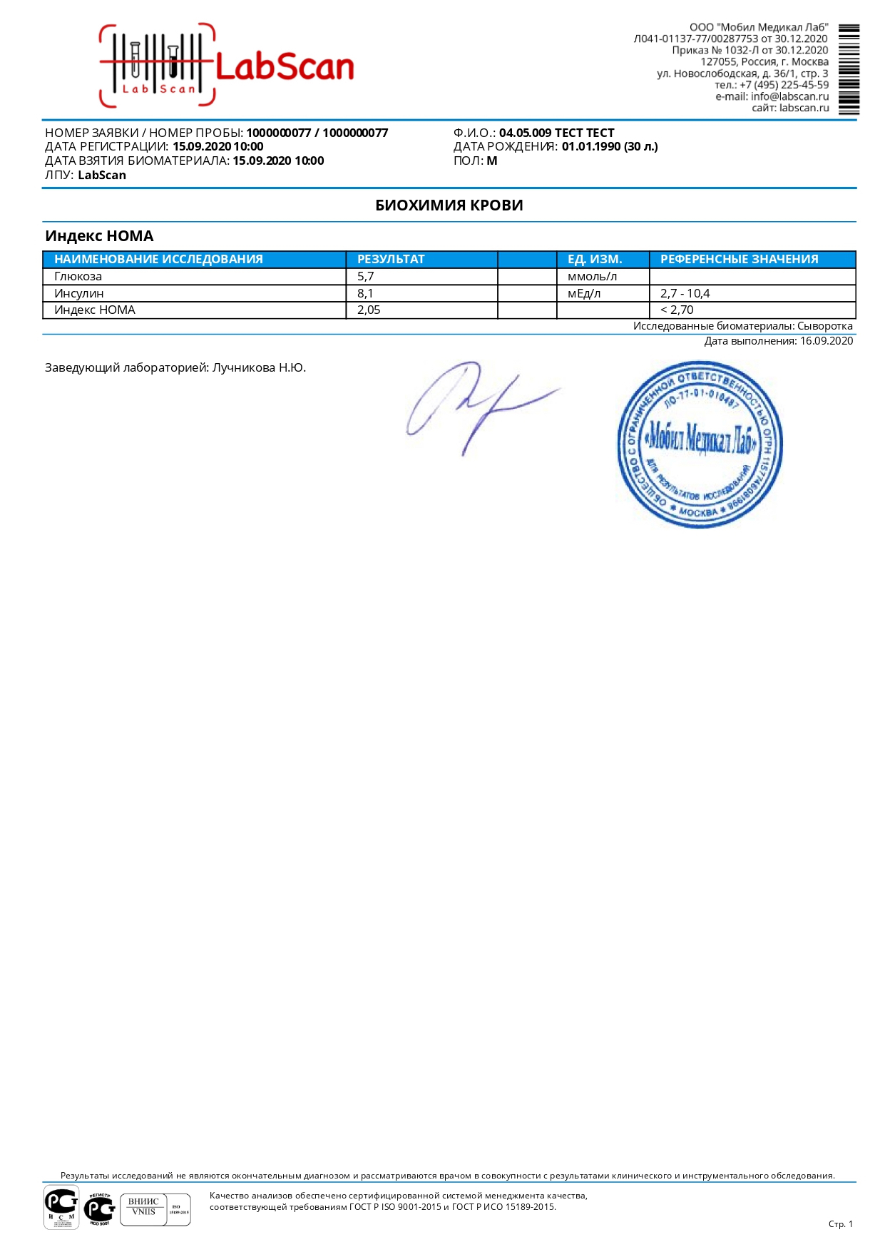 Индекс HOMA (включает определение глюкозы и инсулина)